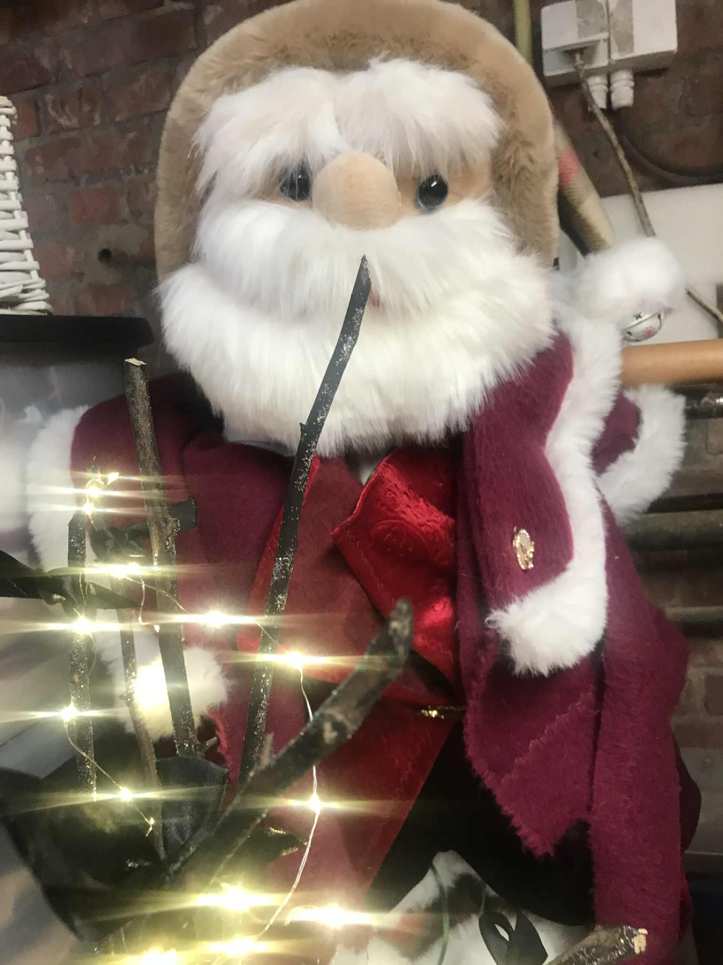 Notre cher Nicholas toujours en robe de chambre, vous charmera par sa douceur des matières, il mesure près de 90 cm et pèse deux kilos, il est idéal pour votre hall d'acceuil, il demande 15 jours de délai de fabrication pour en faire une pièce unique et personnalisée, il est préférable de venir à l'atelier le prendre, un chocolat chaud ou (et) un vin chaud vous y attend, son prix est de 250.00 euros taxes comprises. Le paiement se fait de banque à banque par virement instantané sur place.