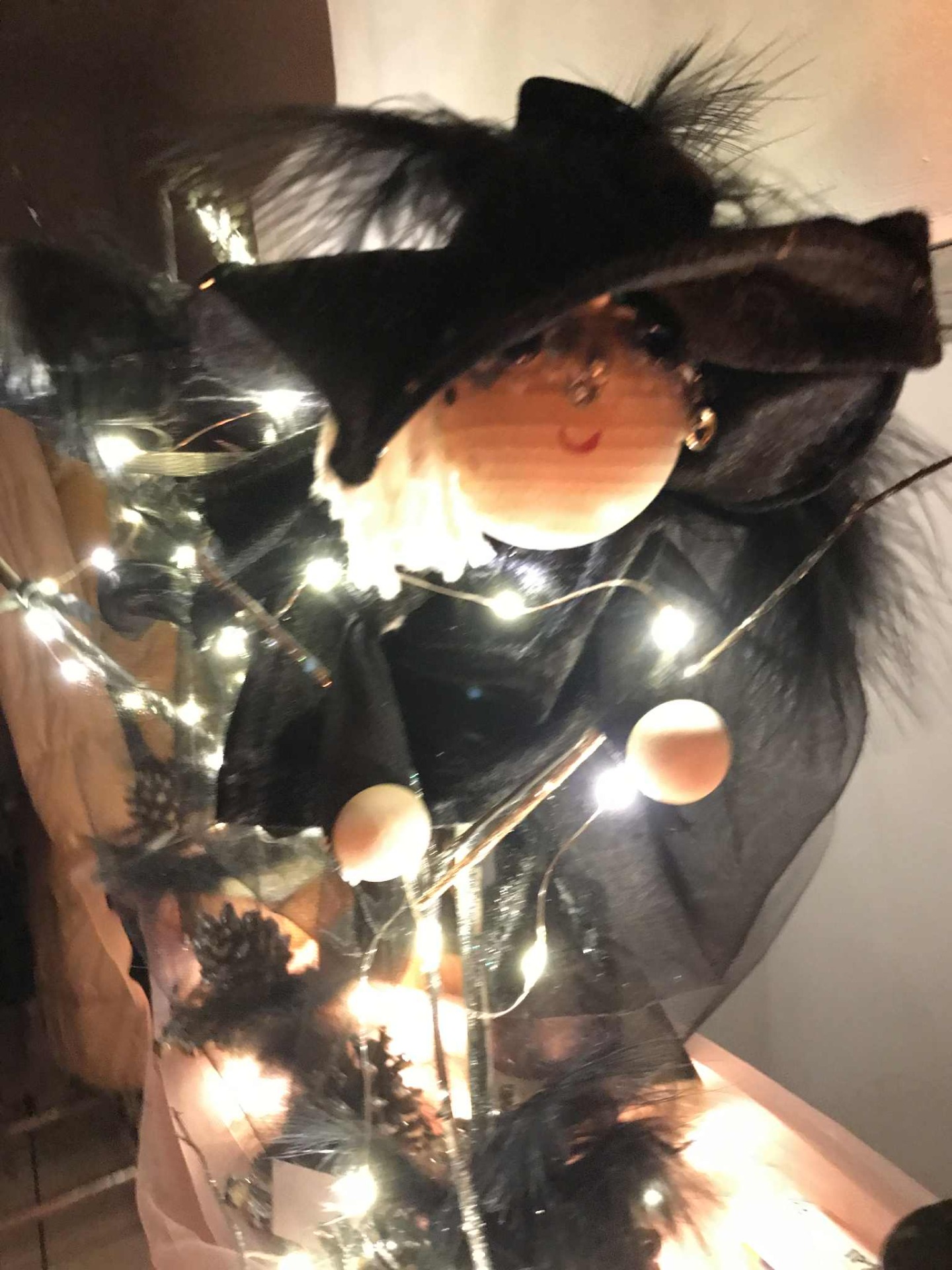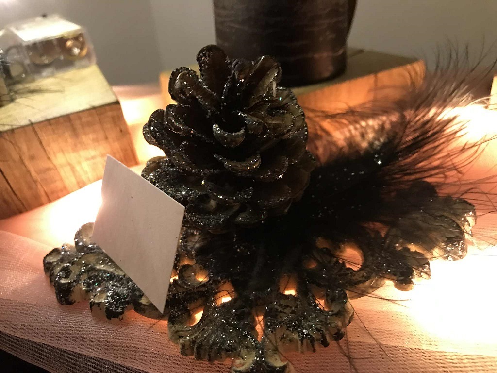 Osez le noir et l'argent, L'arbre milieu de table ou de cheminée mesure 30 cm de haut, de branche naurelle sur pied en chêne vielli coute 30,00 euros taxes comprises, le porte carte nominative pomme de pin et moulure en bois coute 9.00 euros pièce taxes comprises, notre petite fée de milieu de table ou de cheminée coute 120.00 euros taxes comprises. Les bougies pilier sont posées sur support en bois naturel (les bougies ne sont pas babriquées chez nous...) et coutent 9.00 euros pièces taxes comprises. Je vous invite à venir à l'atelier les prendre, un chocolat chaud ou (et) un vin chaud vous y attend. Le paiement se fait de banque à banque par virement instantané sur place.